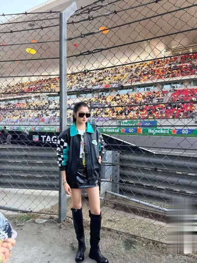 这次F1现场的穿搭,恰恰抓住了她的身材优势,简约的短裙加长筒靴,既符合赛事的氛围,又凸显了她的少女感和酷飒气质。